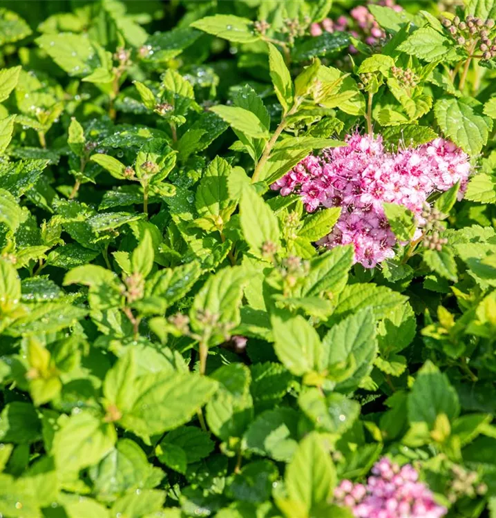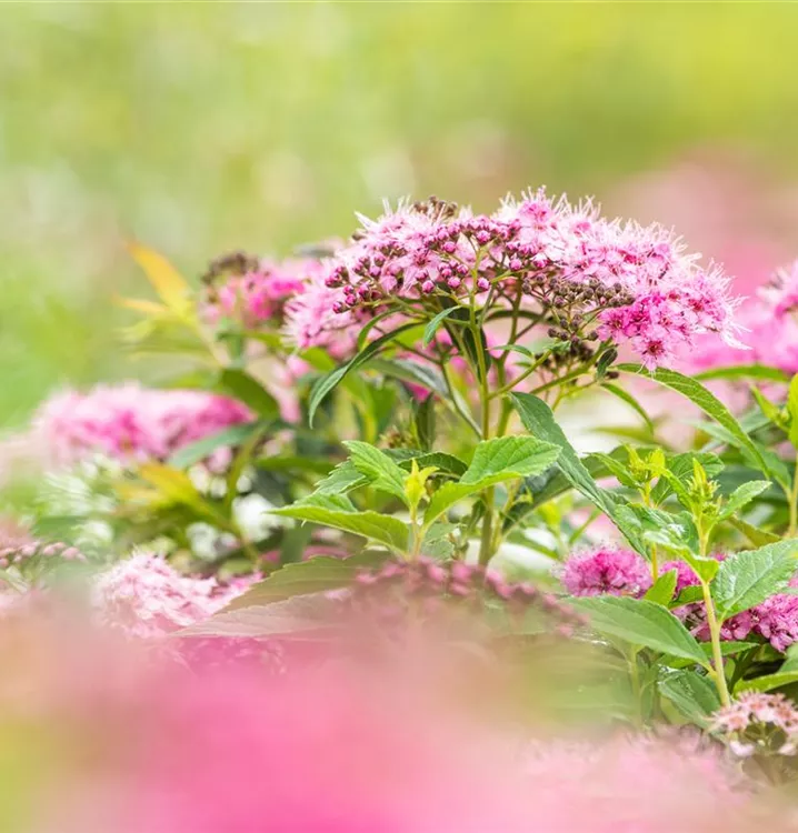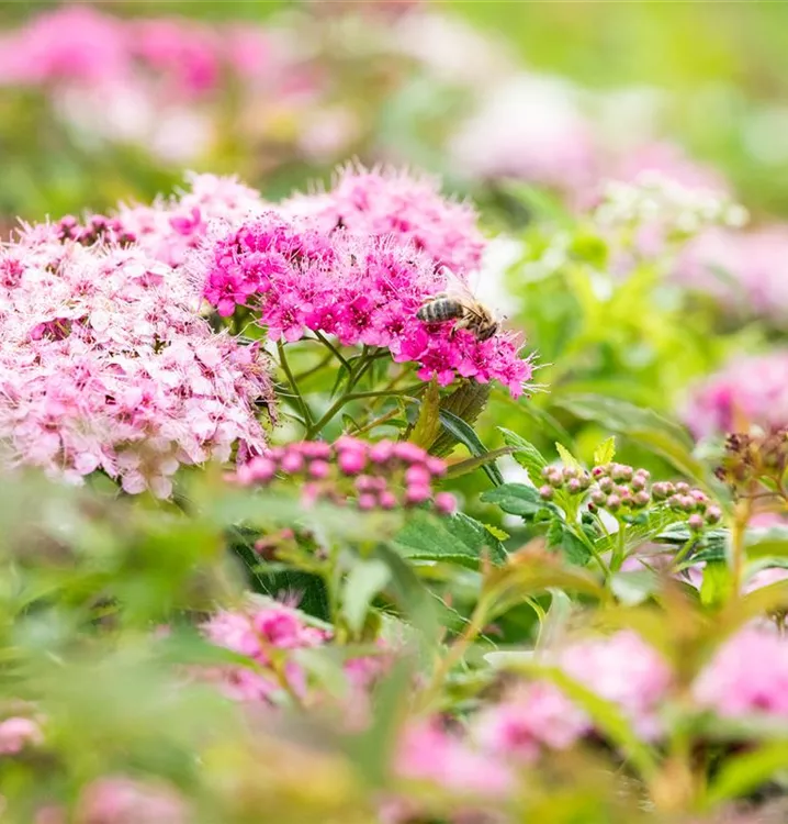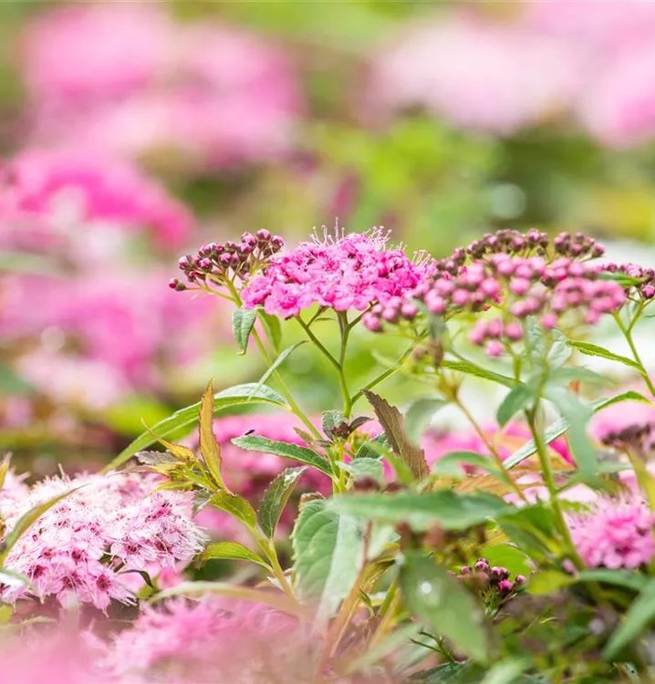Blüte: Rosa, einfach, Schirmrispen; Juni - August.