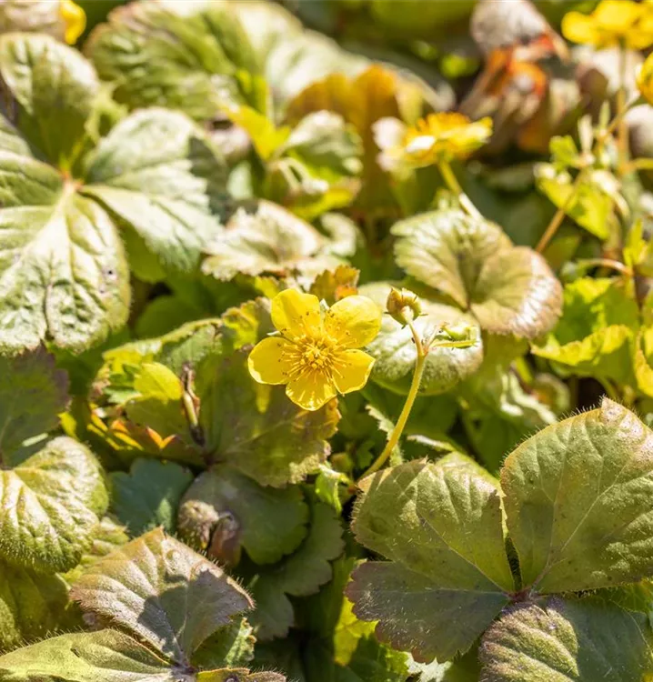 Blüte: Goldgelb, schalenförmig; April - Mai. Immergrün.