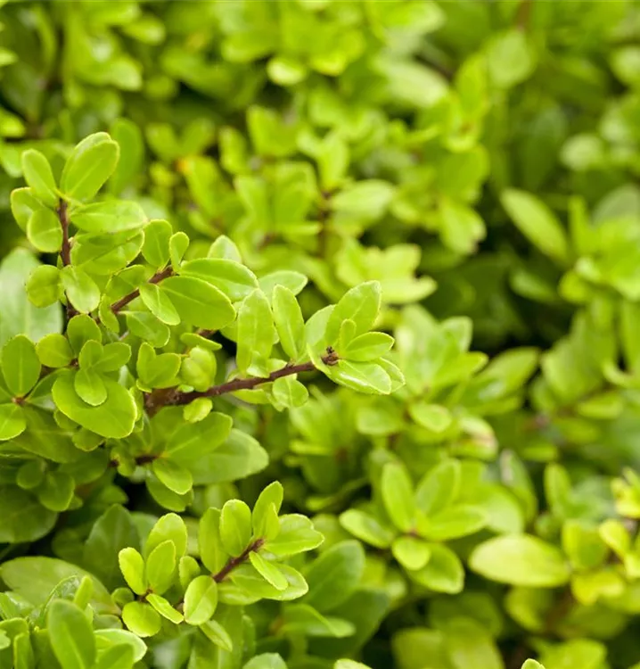 Blatt: Grün - mittelgrün, klein, rundlich-oval, immergrün (Bux-Ersatz). Wuchs: 80 - 130 cm hoch. Winterhart!