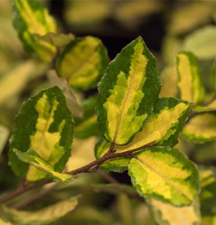 kelt, immergrün. Wuchs: 1 - 1,5 m hoch + 0,8 - 1 m breit.