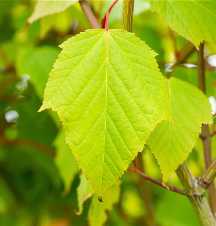 Großstrauch, Rinde weiß gestreift, Jungtriebe rot,