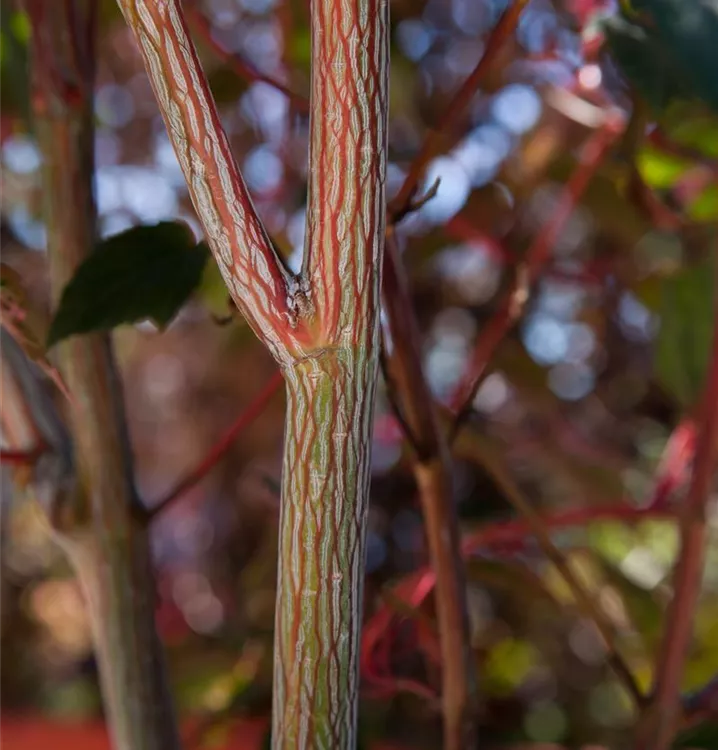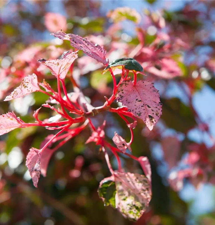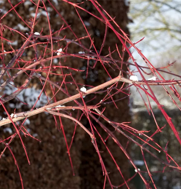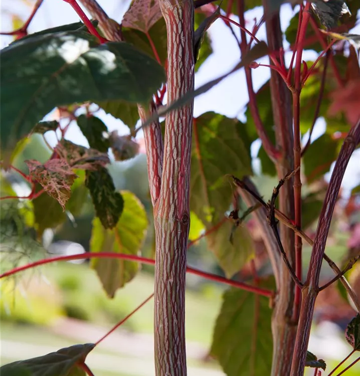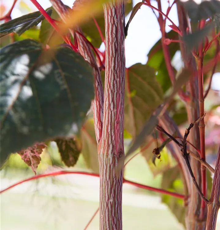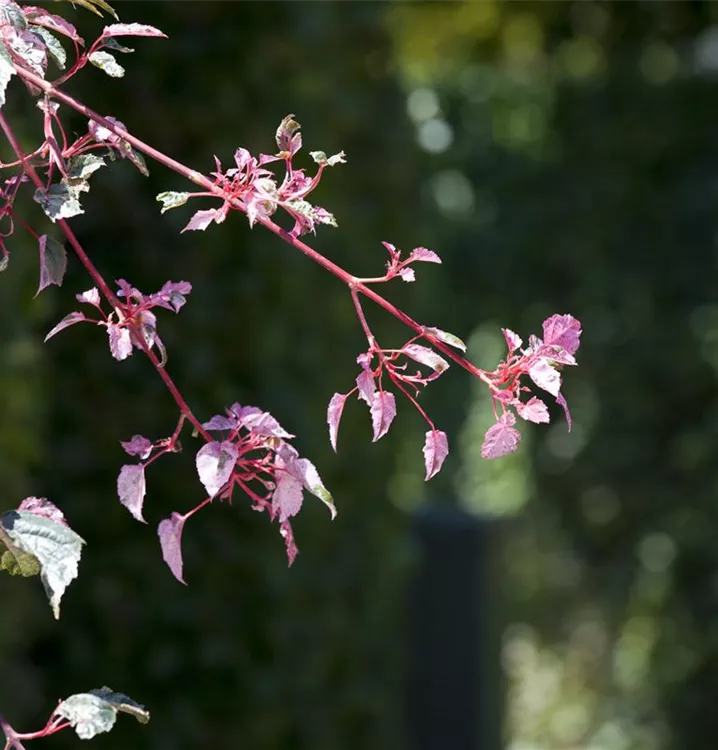 Auffallend gefärbte Rinde, unterschiedliche Laubfarben, pflegeleicht und winterhart, Flachwurzler, für Kübel geeignet, 3-4m hoch
