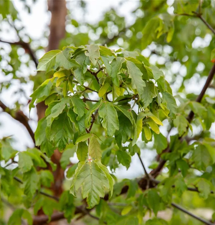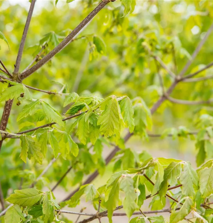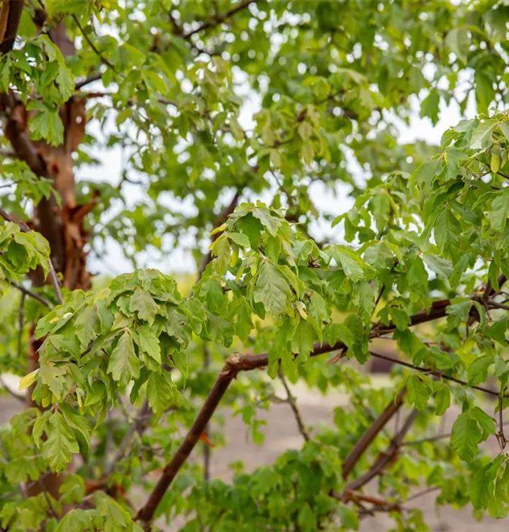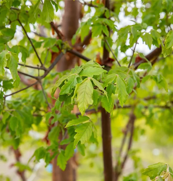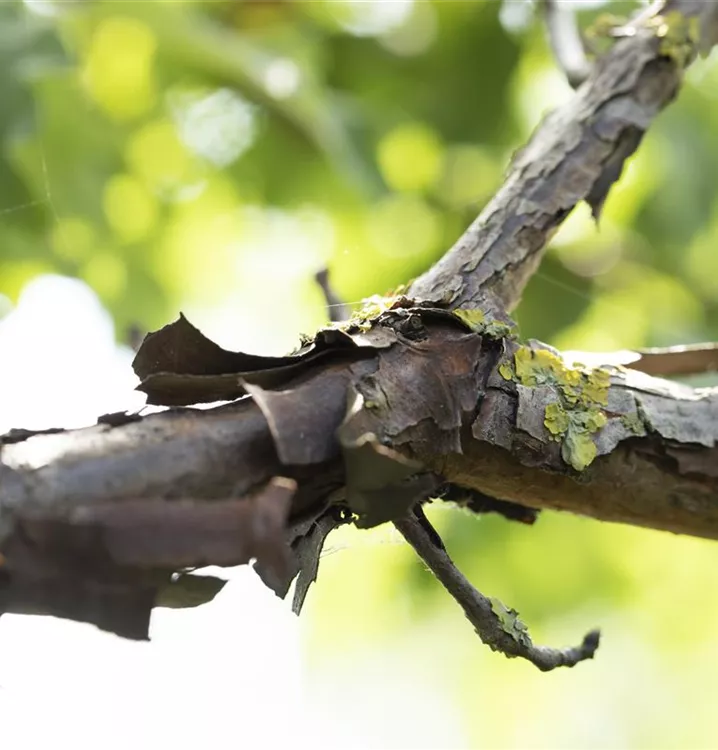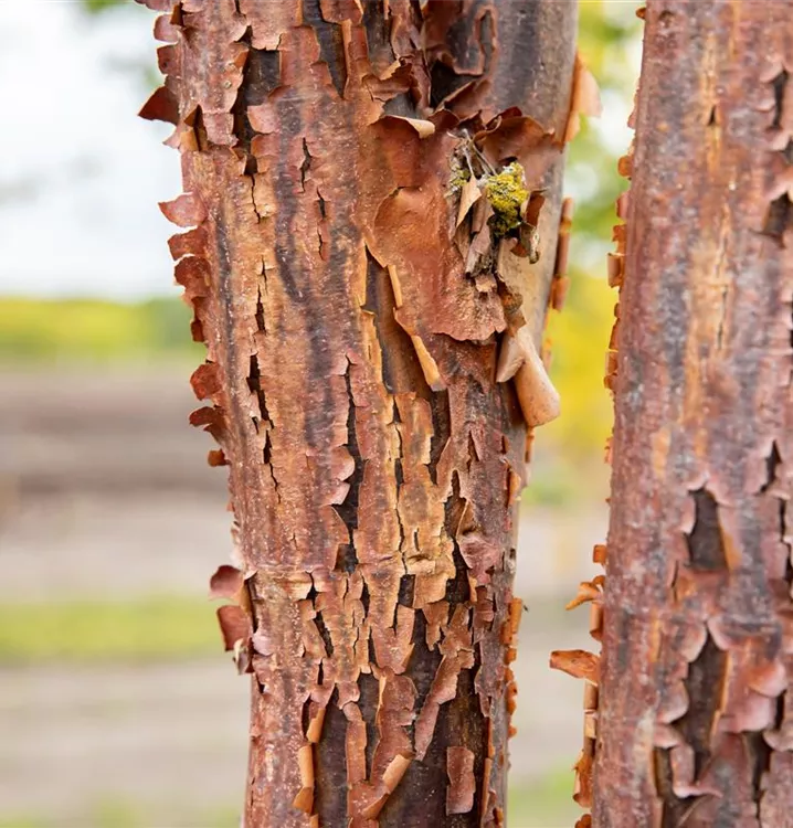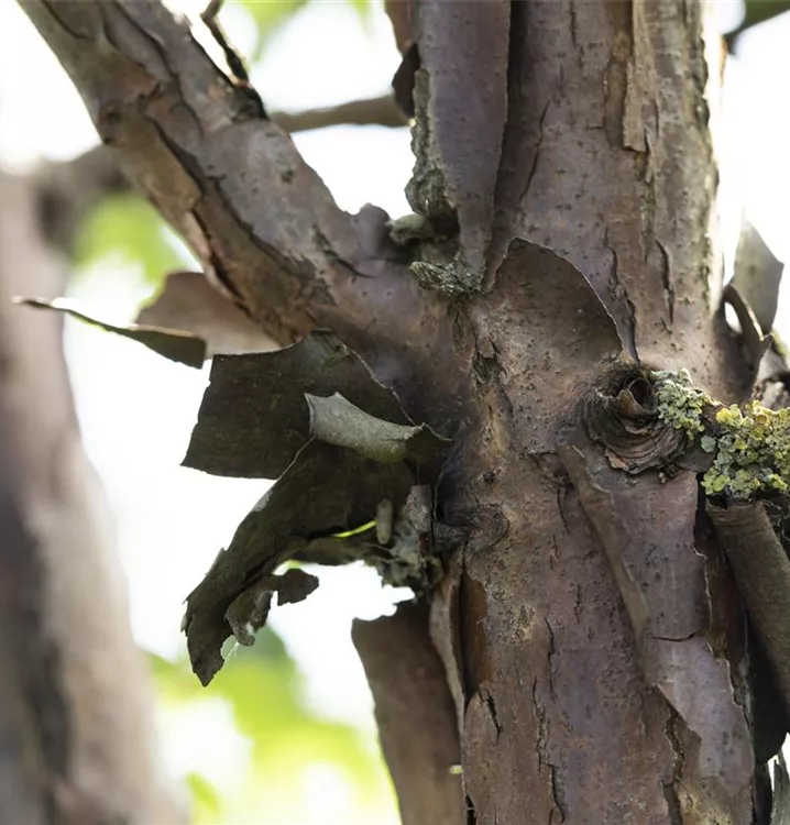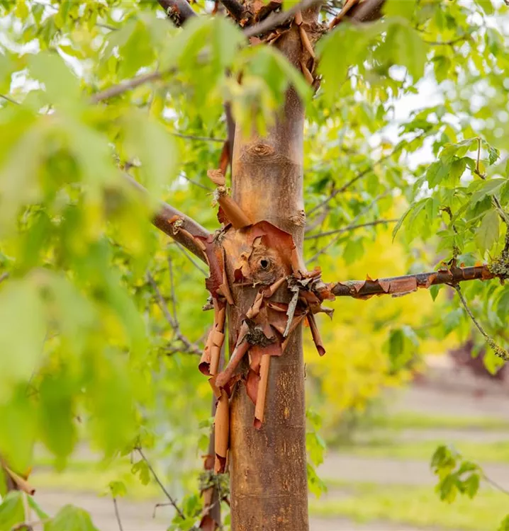 Baum, Rinde dekorativ braun und gefleckt, bis 12 m, sonnig, Herbst orangerot - scharlach, Einzelstellung