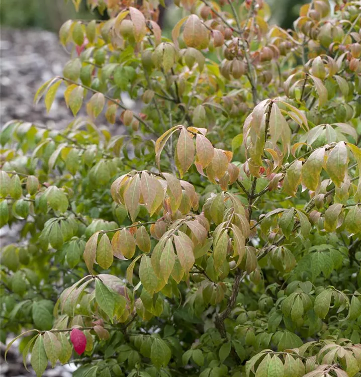 Laub: Grün, im Herbst leuchtend rot. Fruchtschmuck!
