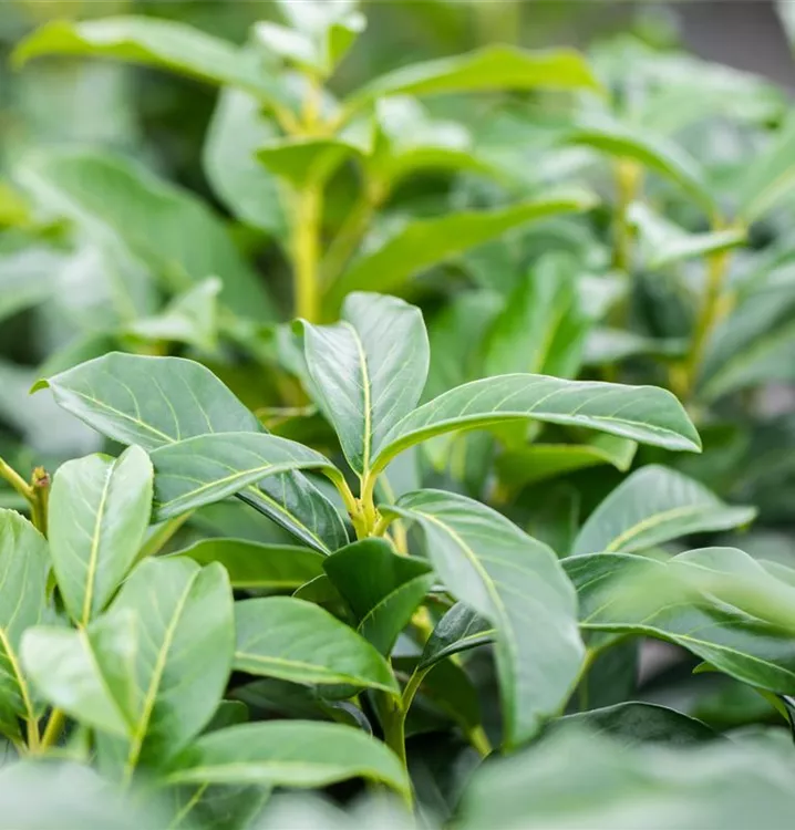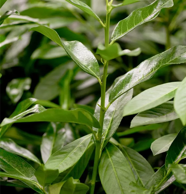 Blüte: Weiß; Mai-Juni. Laub:Dunkelgrün,länglich;immer-grün. Wuchs: Straff aufrecht; 2,5 - 4 m hoch (10-40 cm j.)