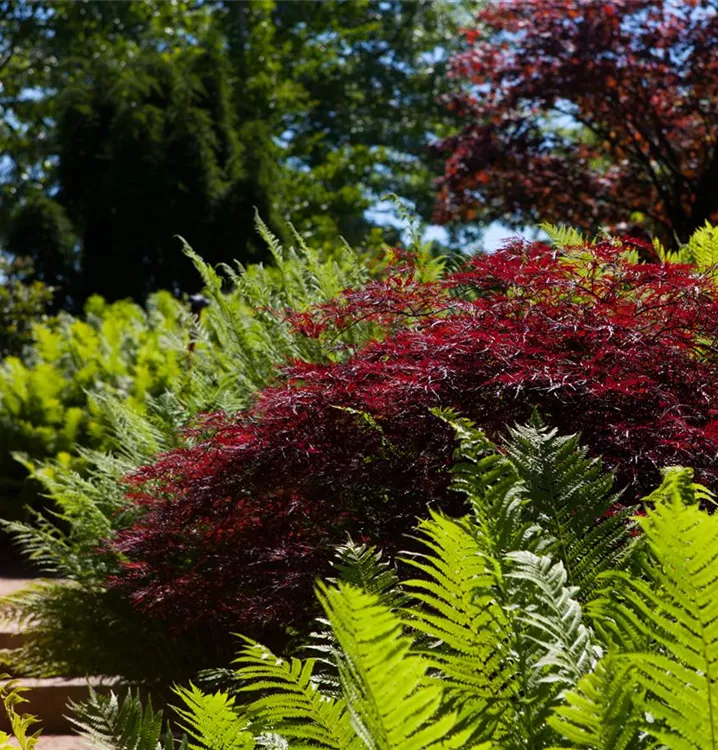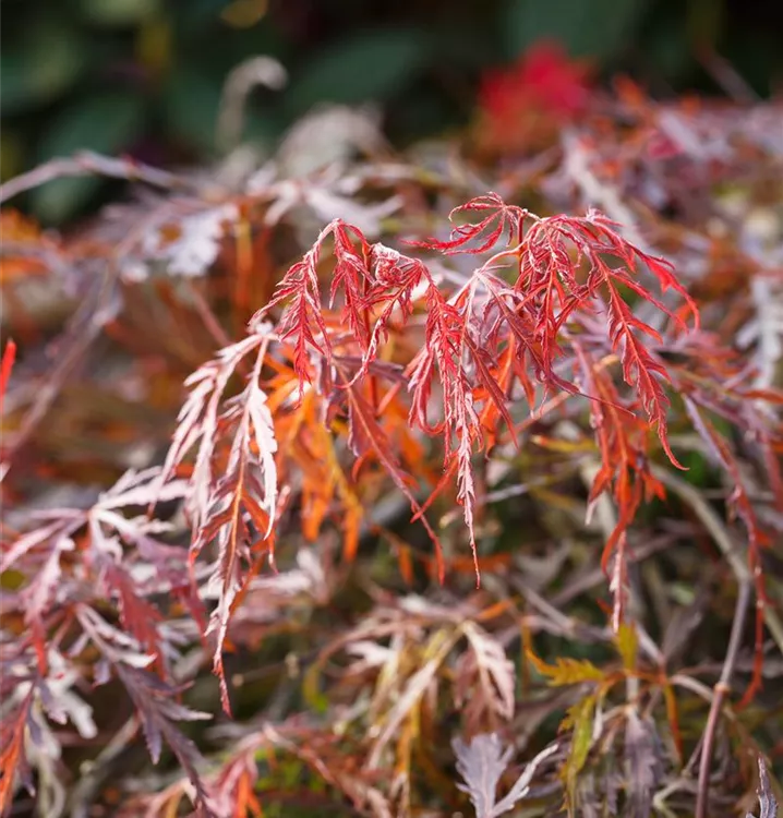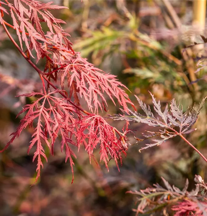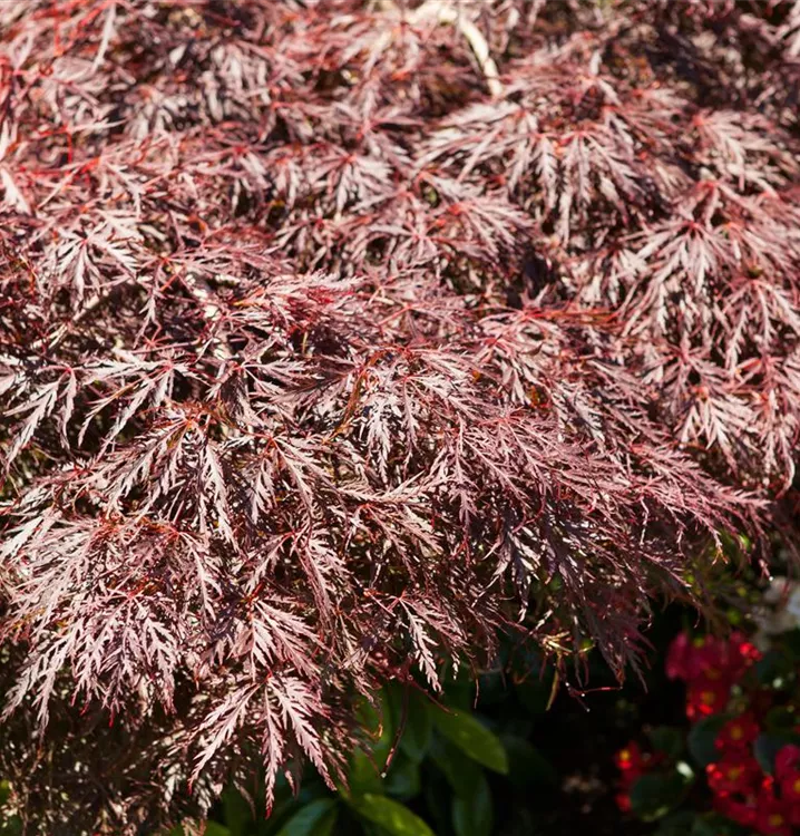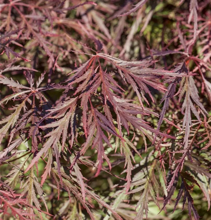 Laub: Purpur bis schwarzrot; geschlitzt, laubabwerfend.