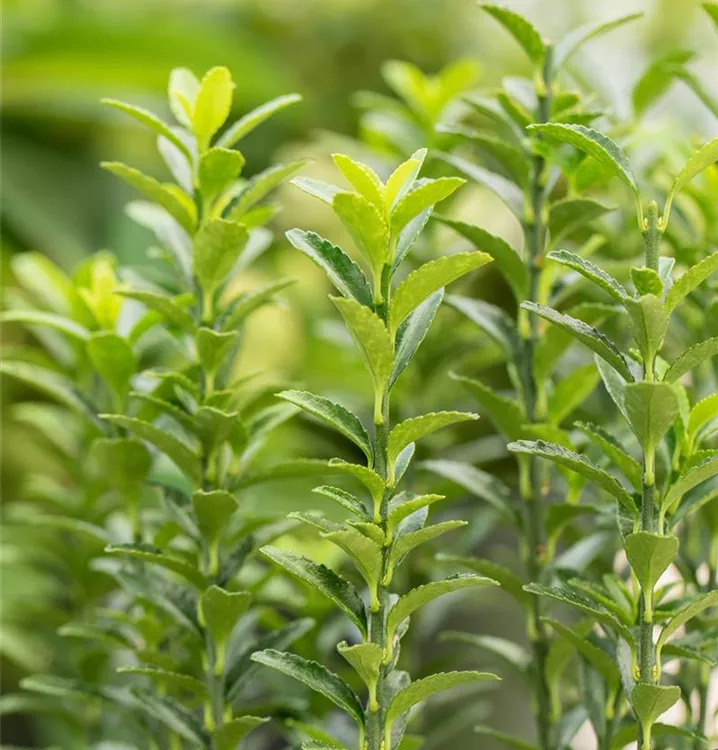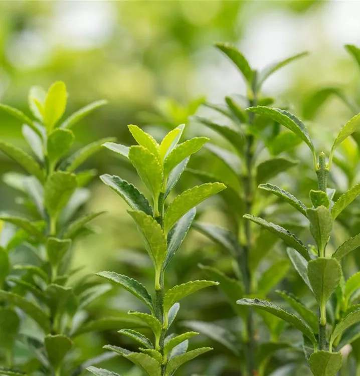 Laub: Dunkelgrün, glänzend, klein; immergrün.