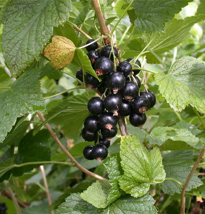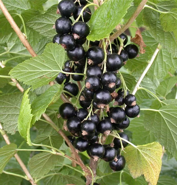 Frucht: Schwarz, groß, süßsäuerlich, zahlreich; Juli -Sept.