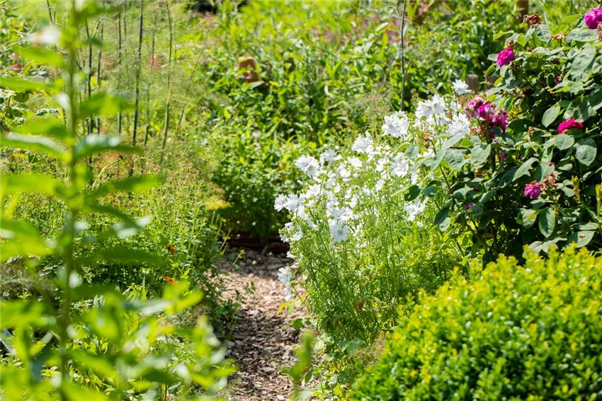 Weil Bambus gerne im Halbschatten wächst, sind Schattenstauden und Bodendecker die idealen Begleitpflanzen für Bambus. Sie können als Unterpflanzung genutzt, oder gezielt neben dem Süßgras im Beet eingesetzt werden. Als beliebte Schattenstaude macht die Funkie neben dem Gras eine richtig gute Figur. Ihr dunkles Laub und die filigranen Blüten sind eine tolle Abwechslung zum saftigen Grün der Bambusblätter. Auch die Blattmuster der Staude können sich sehen lassen und so zeigt die Funkie, dass es nicht immer auf große Blüten ankommt, um neben Bambus gut auszusehen. Auch das Kleine Immergrün eignet sich perfekt als Begleiter für das Süßgras. Der niedrig wachsende Bodendecker eignet sich perfekt für Zwischenräume und die kleinen Blüten sind ein echtes Highlight. Auch das Kaukasus Vergissmeinnicht sorgt mit seinen besonderen Blättern für Aufsehen neben dem Bambus. Und ganz egal, ob mit oder ohne Blüten – Stauden sind als Begleitpflanzen für das Süßgras einfach immer ein kleines Highlight. Denn es kommt nicht immer auf die Größe an!