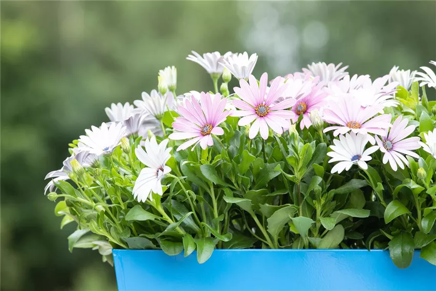 Selbstverständlich gehören auf jeden Balkon Blühpflanzen. Wer wenig Zeit hat, mehrmals im Jahr neue Blühpflanzen zu kaufen, das Substrat zu wechseln und die Gewächse zu pflegen, kann auf Stauden als ganzjährige Balkonpflanzen zurückgreifen. Winterharte, ganzjährige Stauden eignen sich im Besonderen, da sie sehr robust sind, kaum Pflege benötigen und den Balkon über viele Monate im Jahr durch ihre Blütenpracht verschönern. Wesentlich bei der Staudenpflege ist, den ganzjährigen Balkonpflanzen das richtige Maß an Wasser zur Verfügung zu stellen. Stauden benötigen in der Regel einen durchlässigen, nährstoffreichen Boden und wenig Wasser. Da die Pflanzen auf dem Balkon in Pflanzkästen oder Kübeln weniger tiefe Wurzeln bilden können, bedürfen Stauden auf dem Balkon etwas mehr Wasser als im Garten.