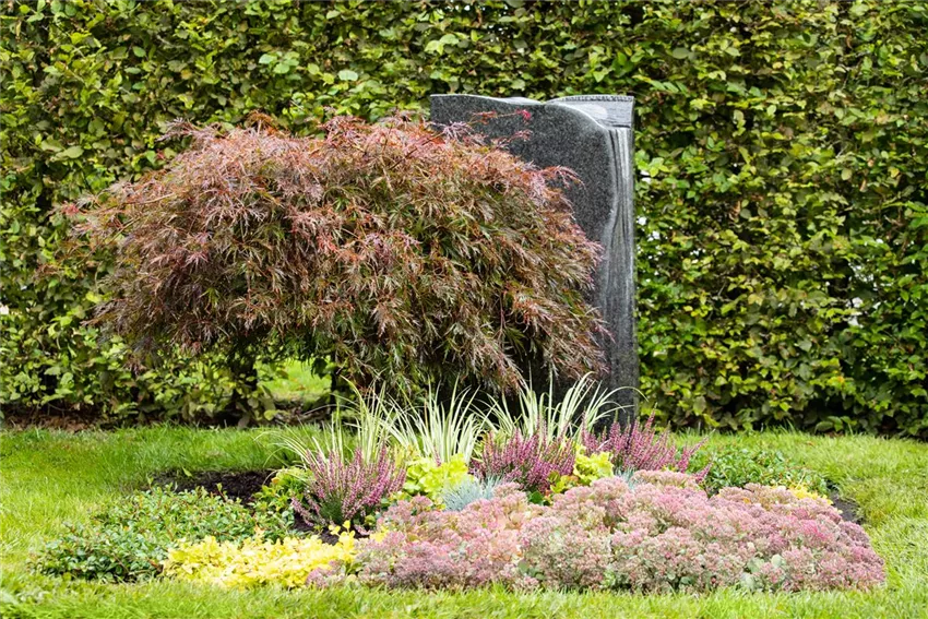 Sträucher und Hochstämmchen für eine ganzjährige Grabbepflanzung